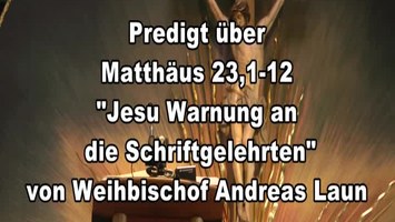 Predigt Video "Jesu Warnung an die Schriftgelehrten" von Weihbischof Andreas Laun gehalten am 30.01.2011 über das Evangelium nach Matthäus 23,1-12 Parallelstellen Markus 12,38-40 Lukas 11,39-52 Lukas 20,45-47